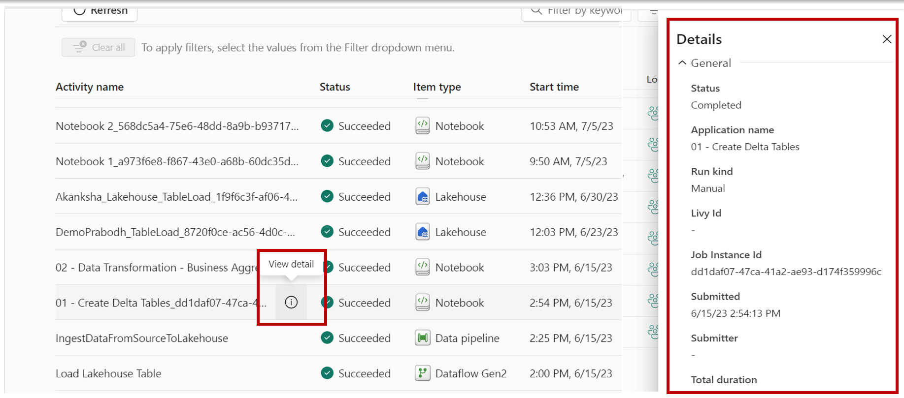 As the name indicates, Monitoring Hub helps users monitor activities within Microsoft Fabric. It is a station to view and track active activities across Microsoft Fabric, such as dataset refreshes, Spark Job runs, and many others, from a central location.